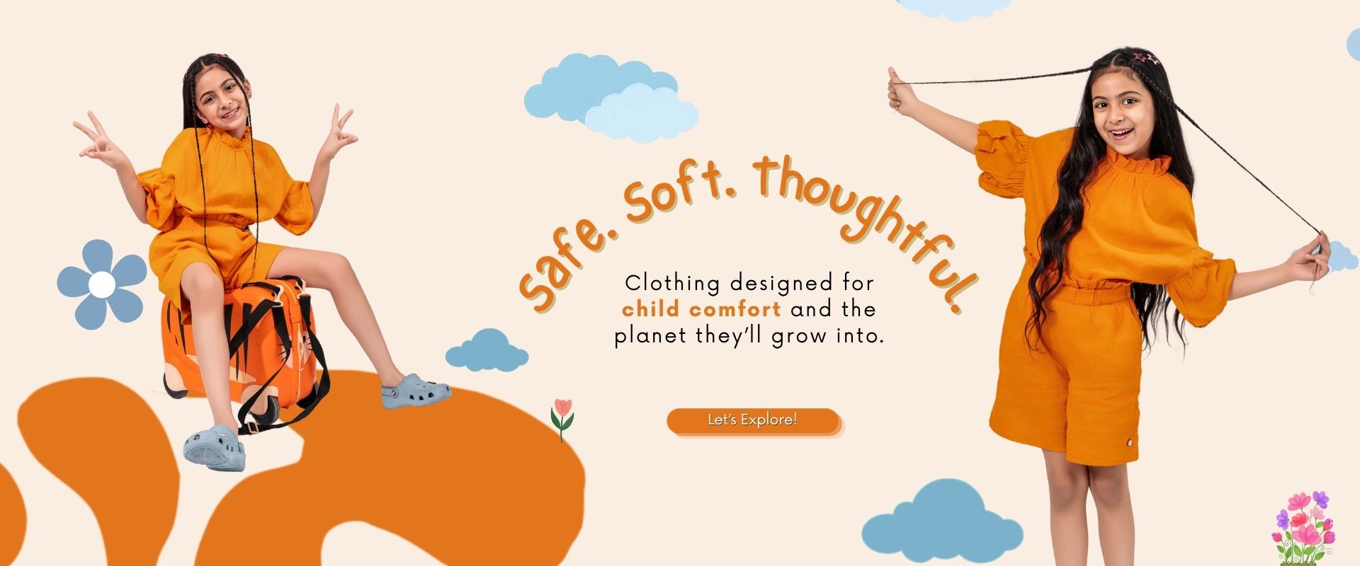 Frill Pop Girls Co-ord Sets - Sunset Orange